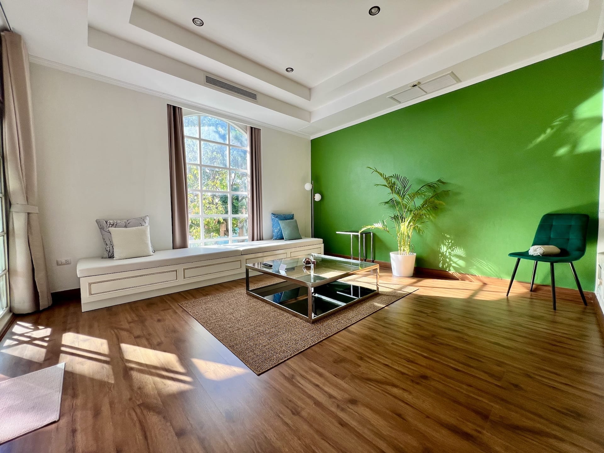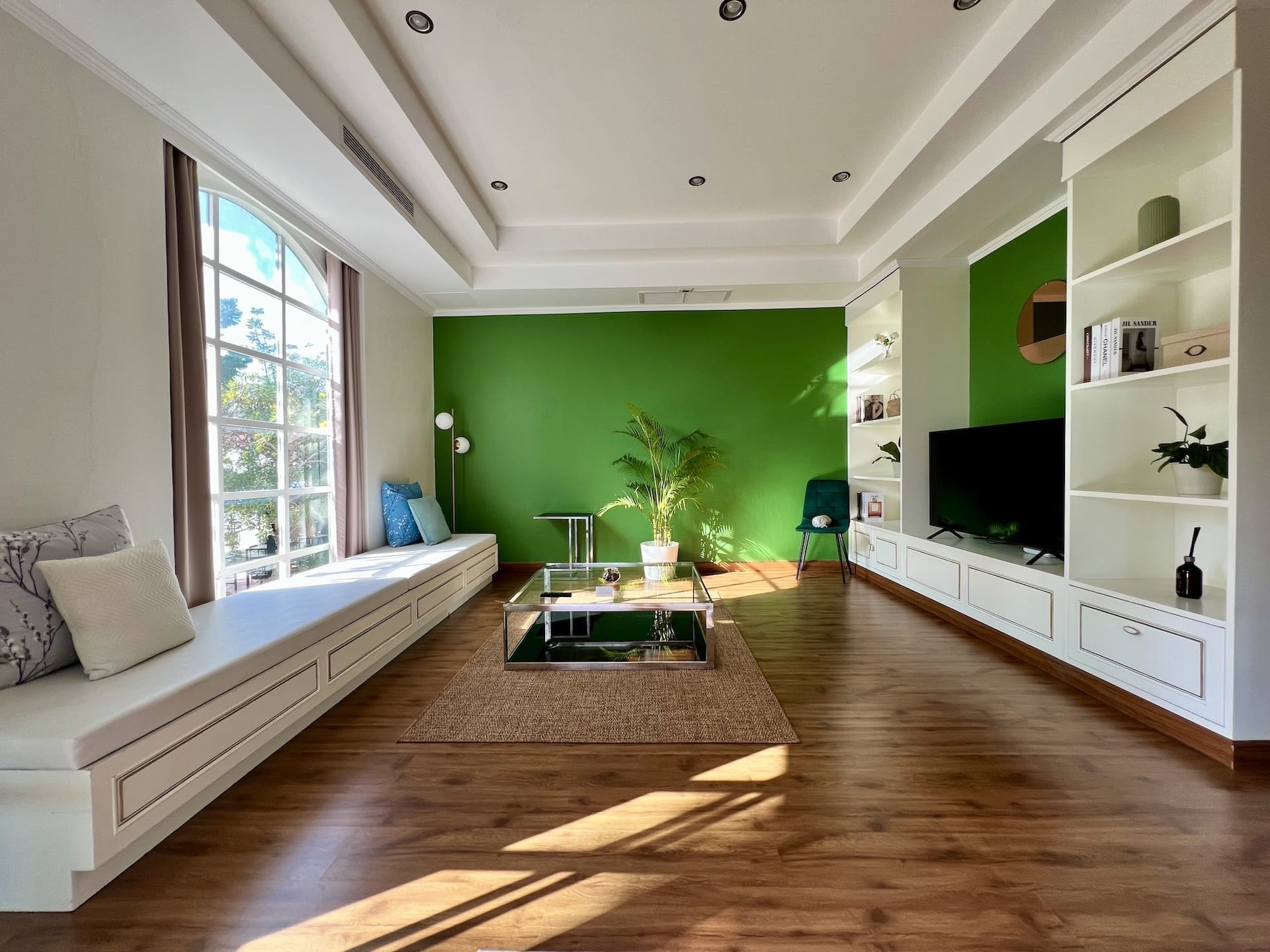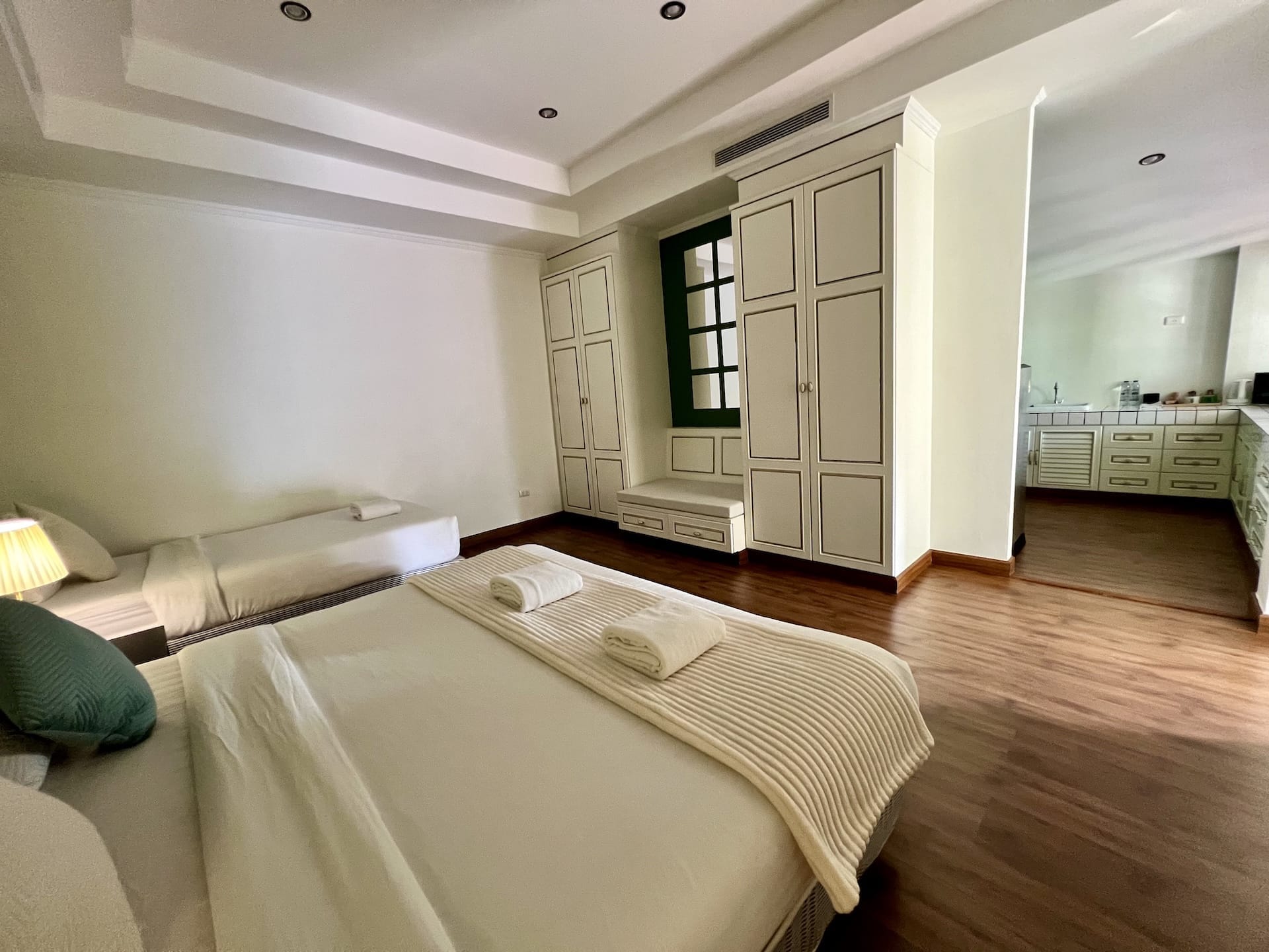 An upgraded garden-facing apartment featuring a distinctive arch-shaped window that enhances natural light and garden views. Premium furnishings and a dedicated laptop desk make this category particularly well suited to guests who wish to combine relaxation with remote work.
